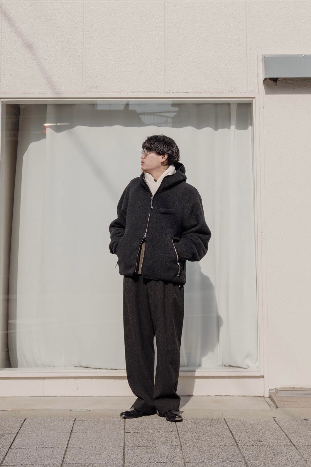 カジュアルなアウターと馴染むように、表面にナチュラルなシワ加工を施しています。
