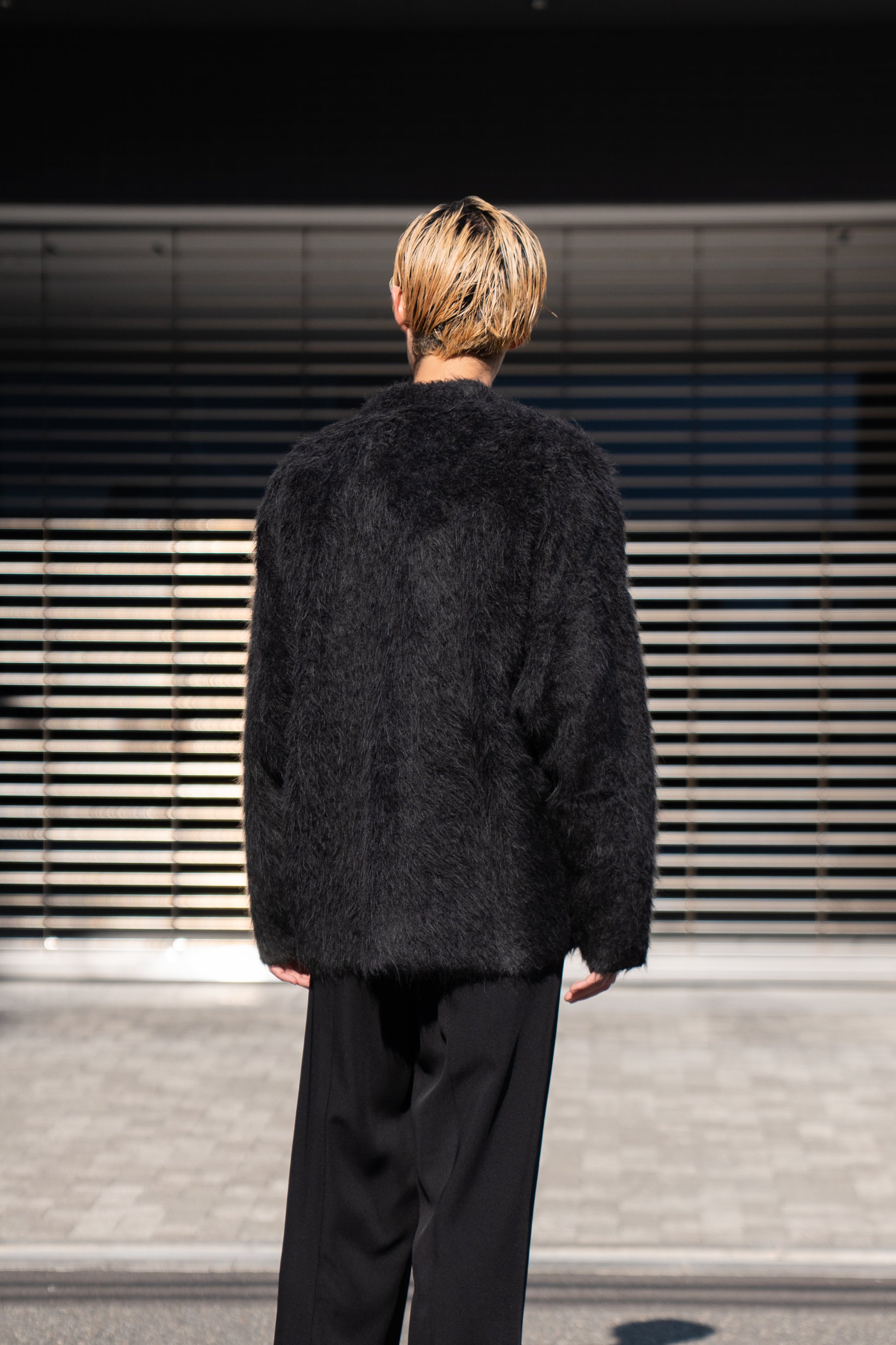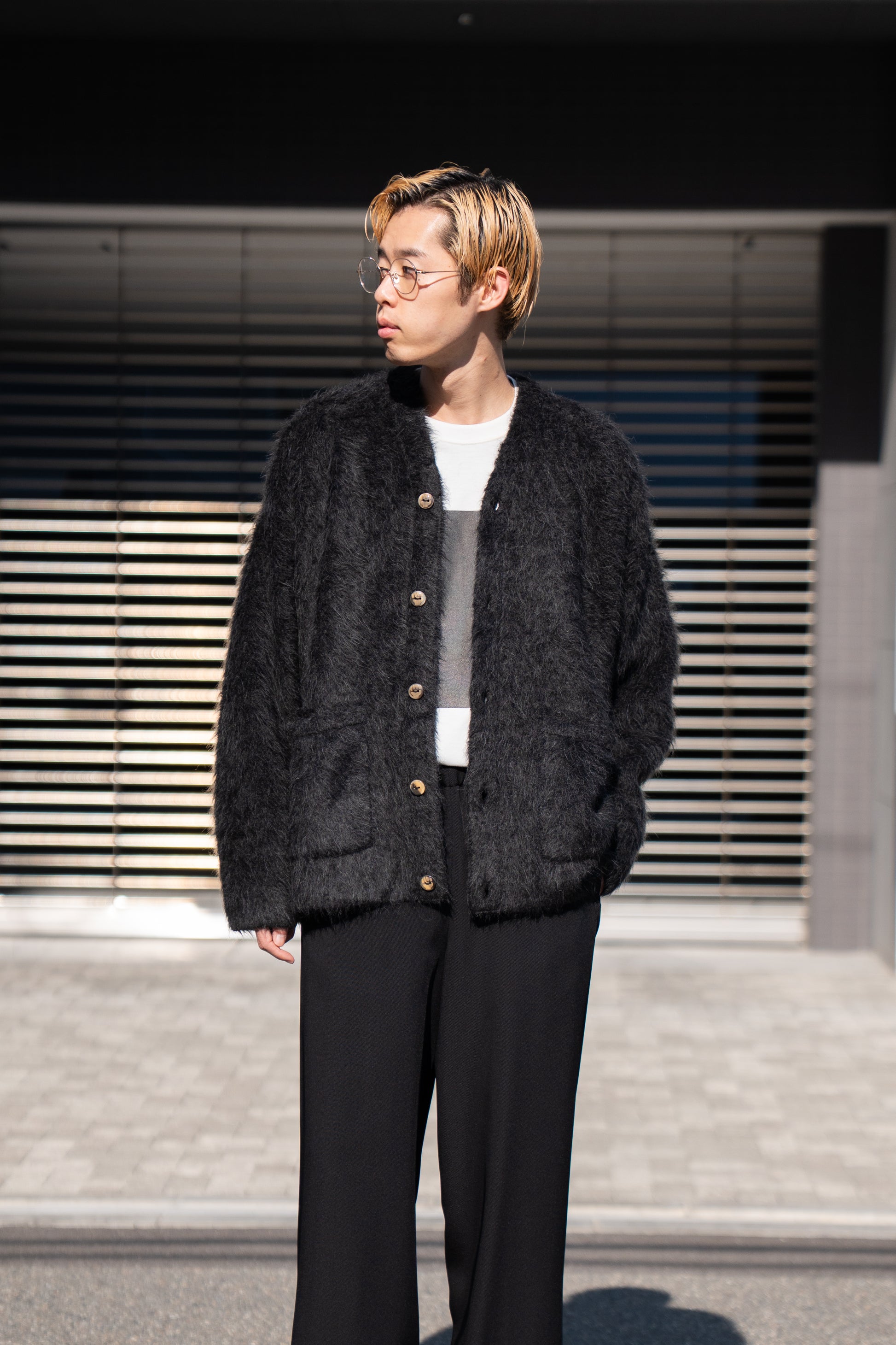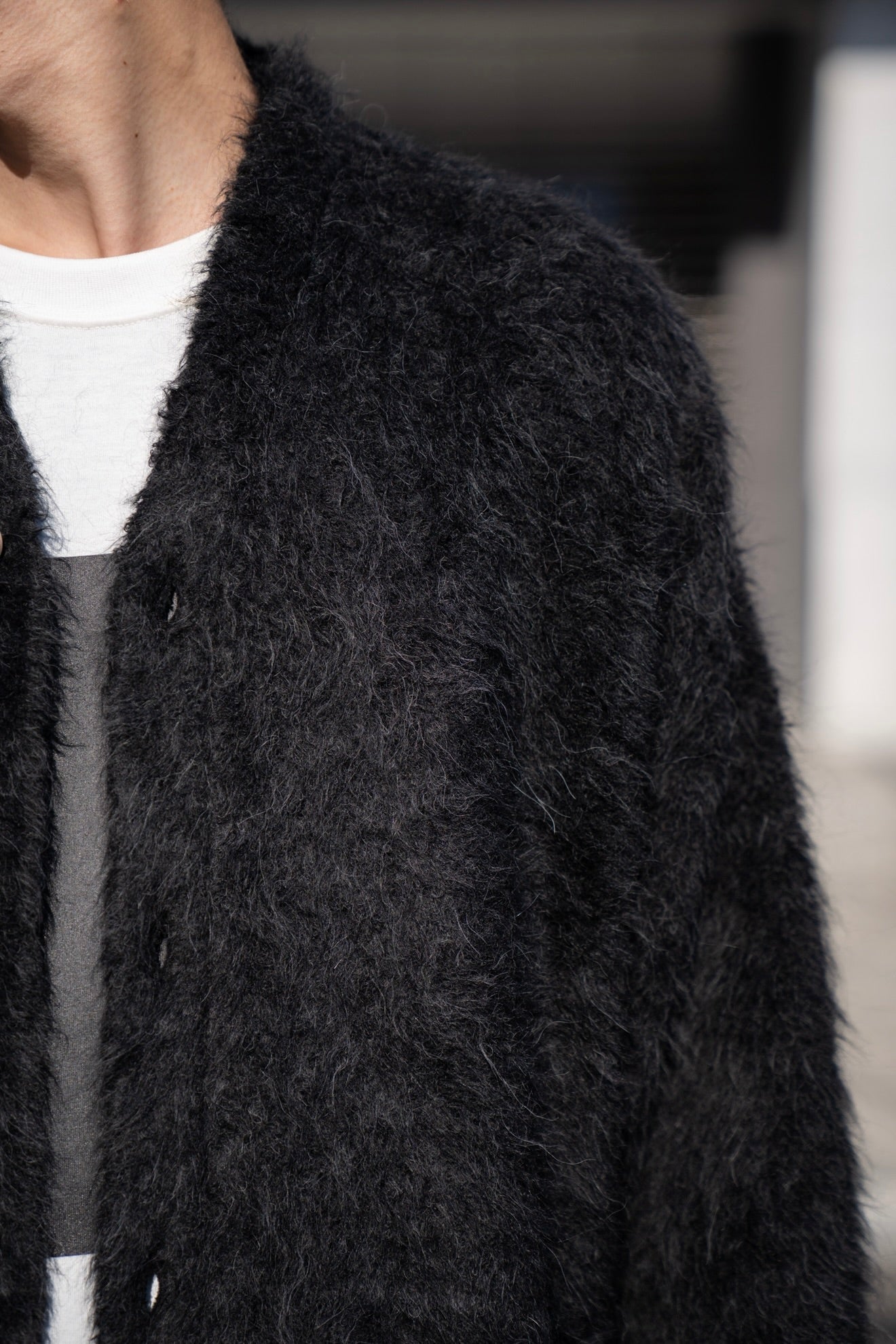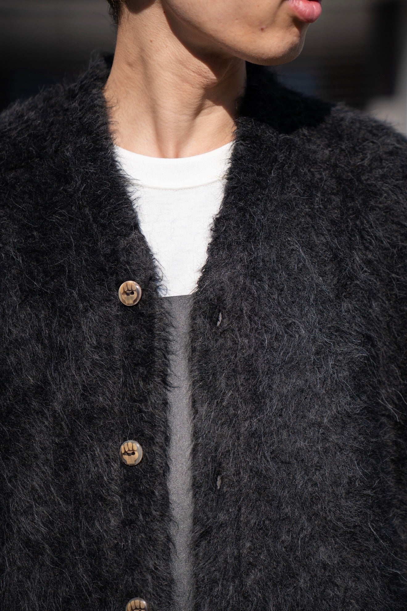 The Inoue Brothersでは定番の長い毛足が印象的なアルパカ素材の”Suri Cardigan”