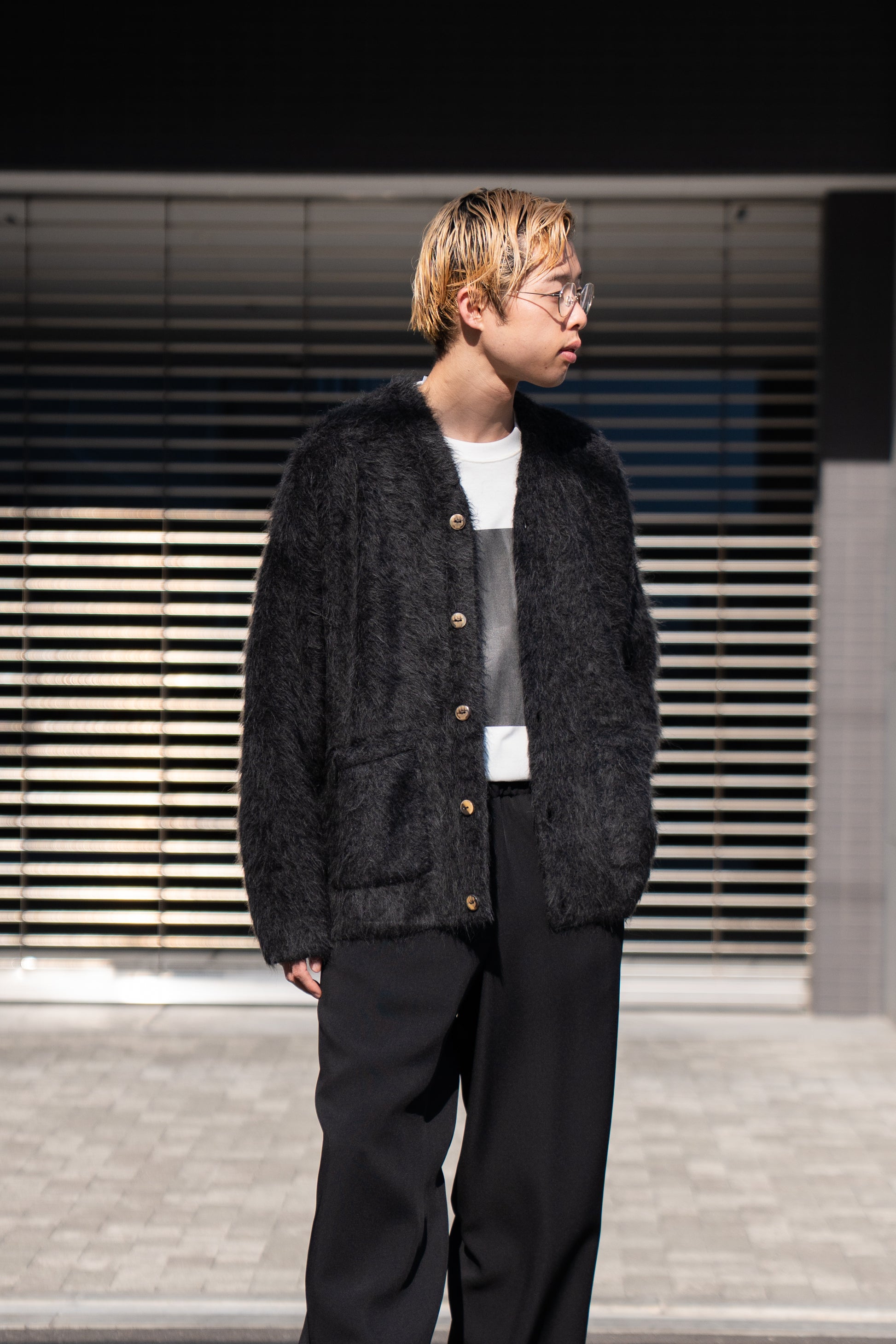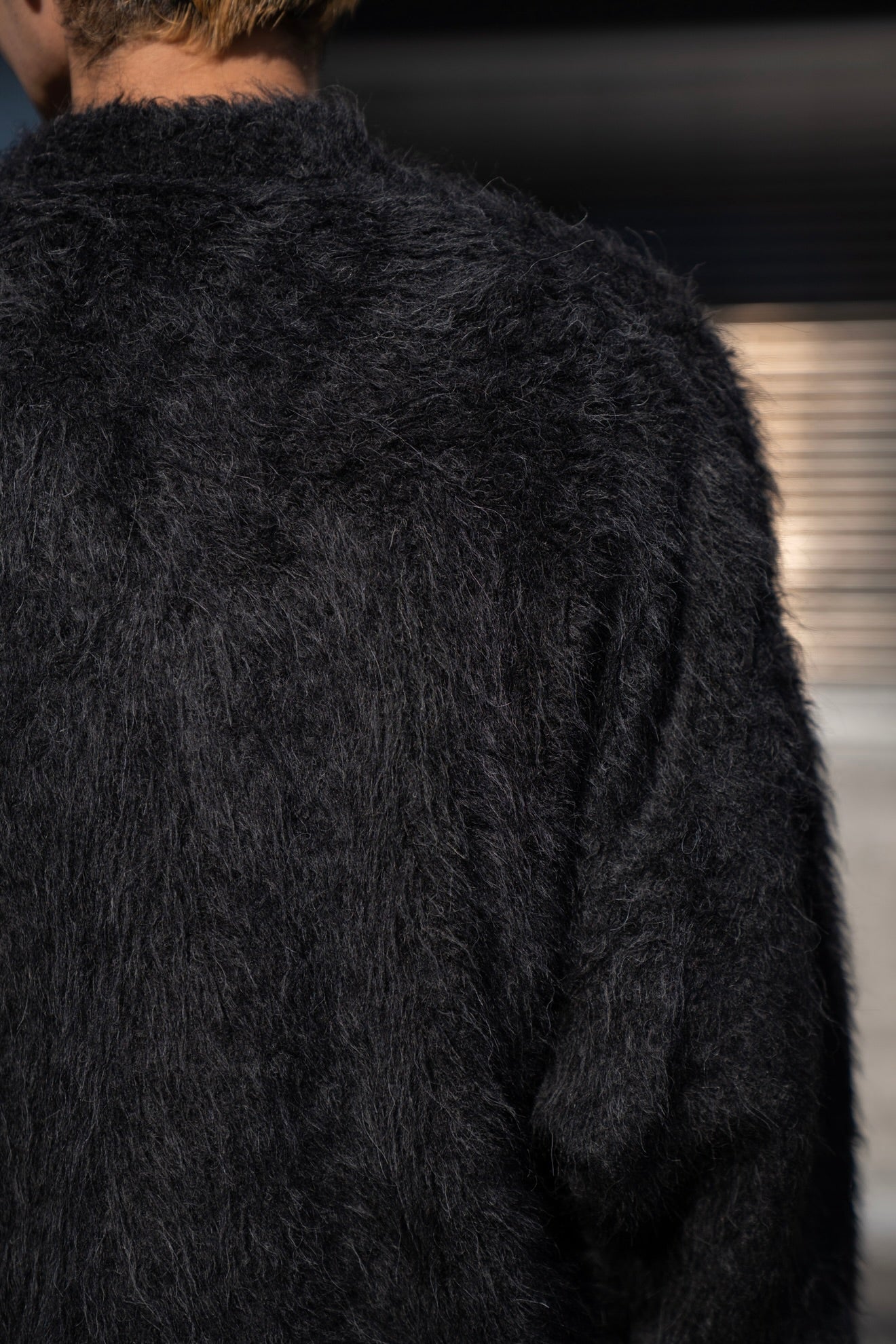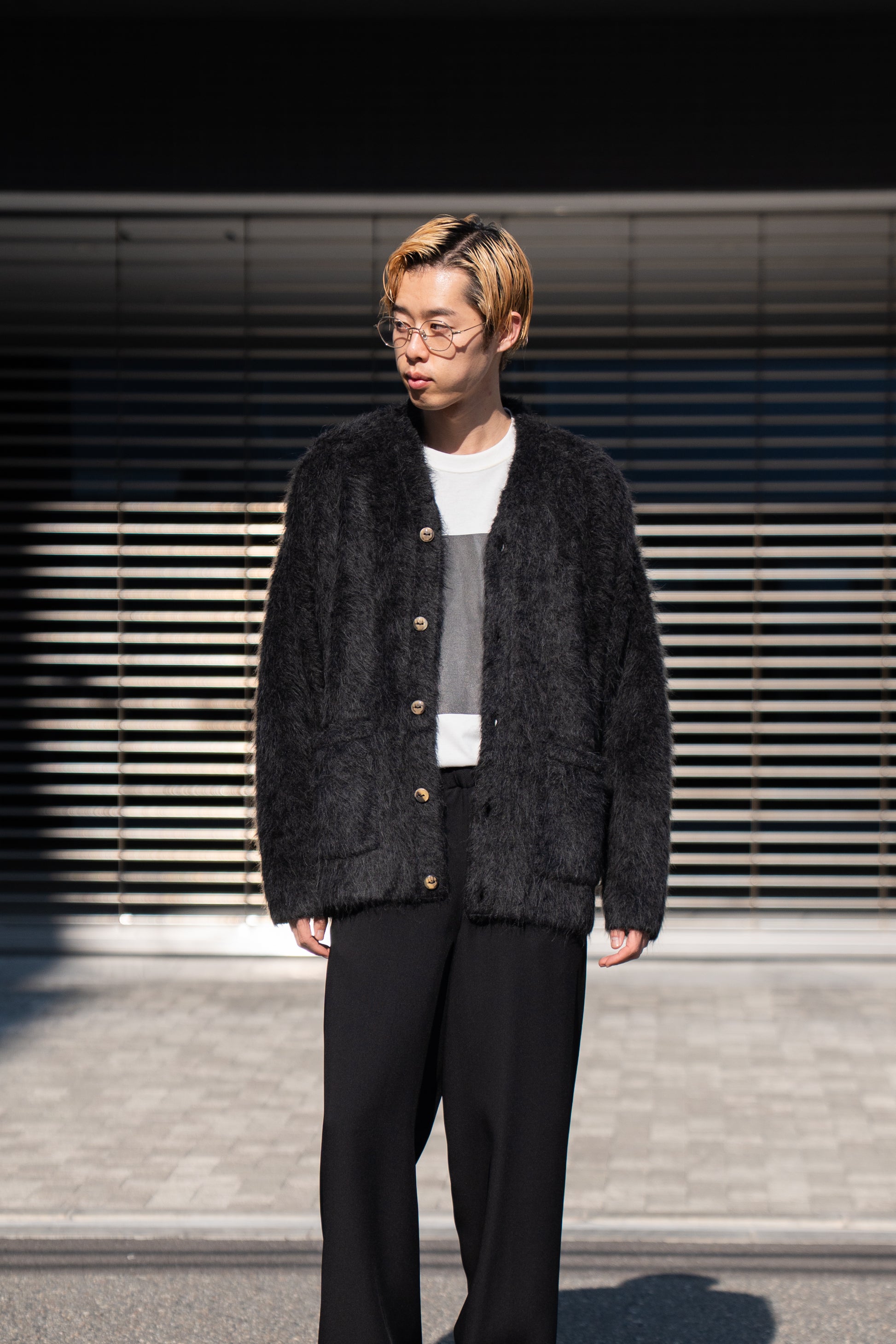 The Inoue Brothersでは定番の長い毛足が印象的なアルパカ素材の”Suri Cardigan”