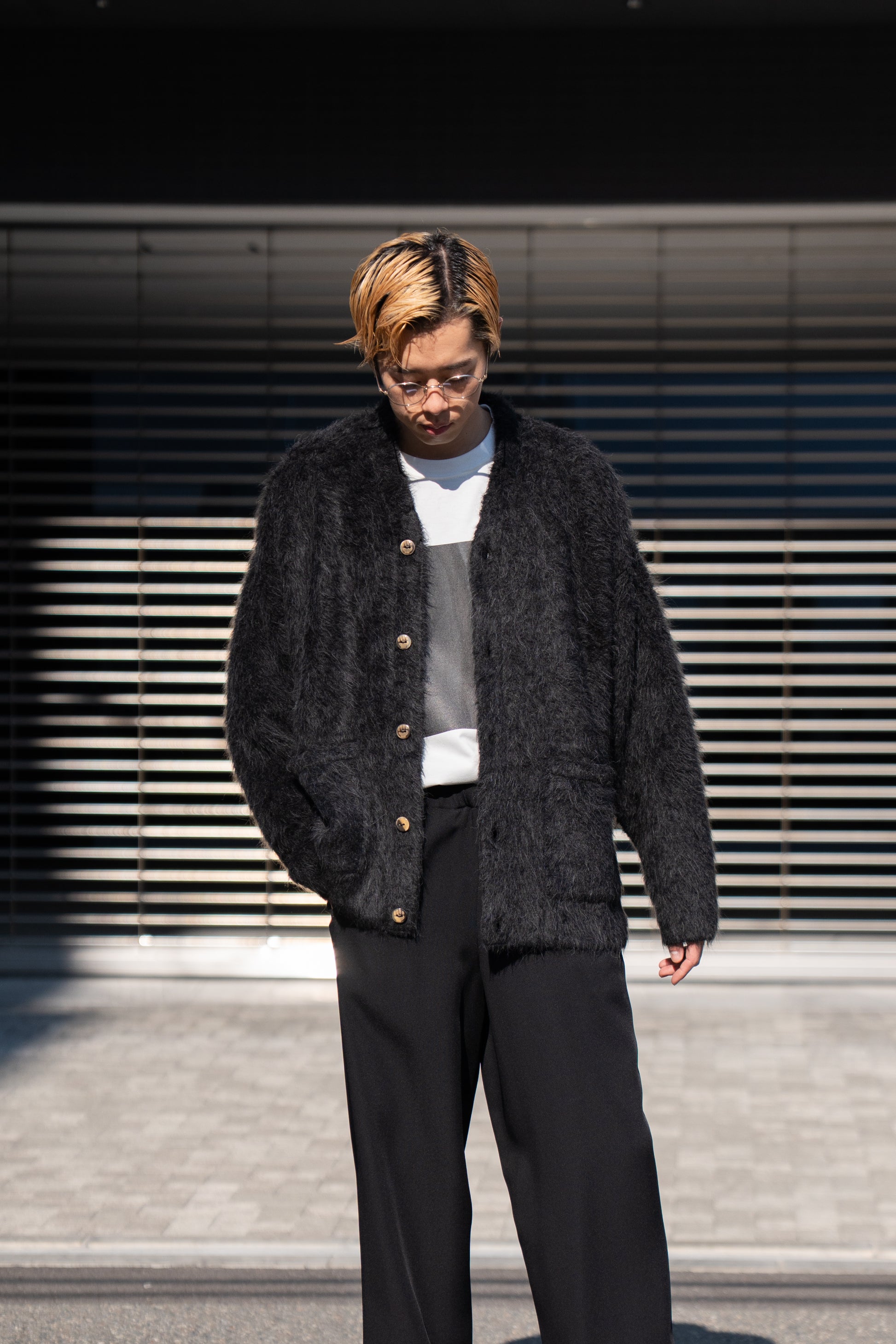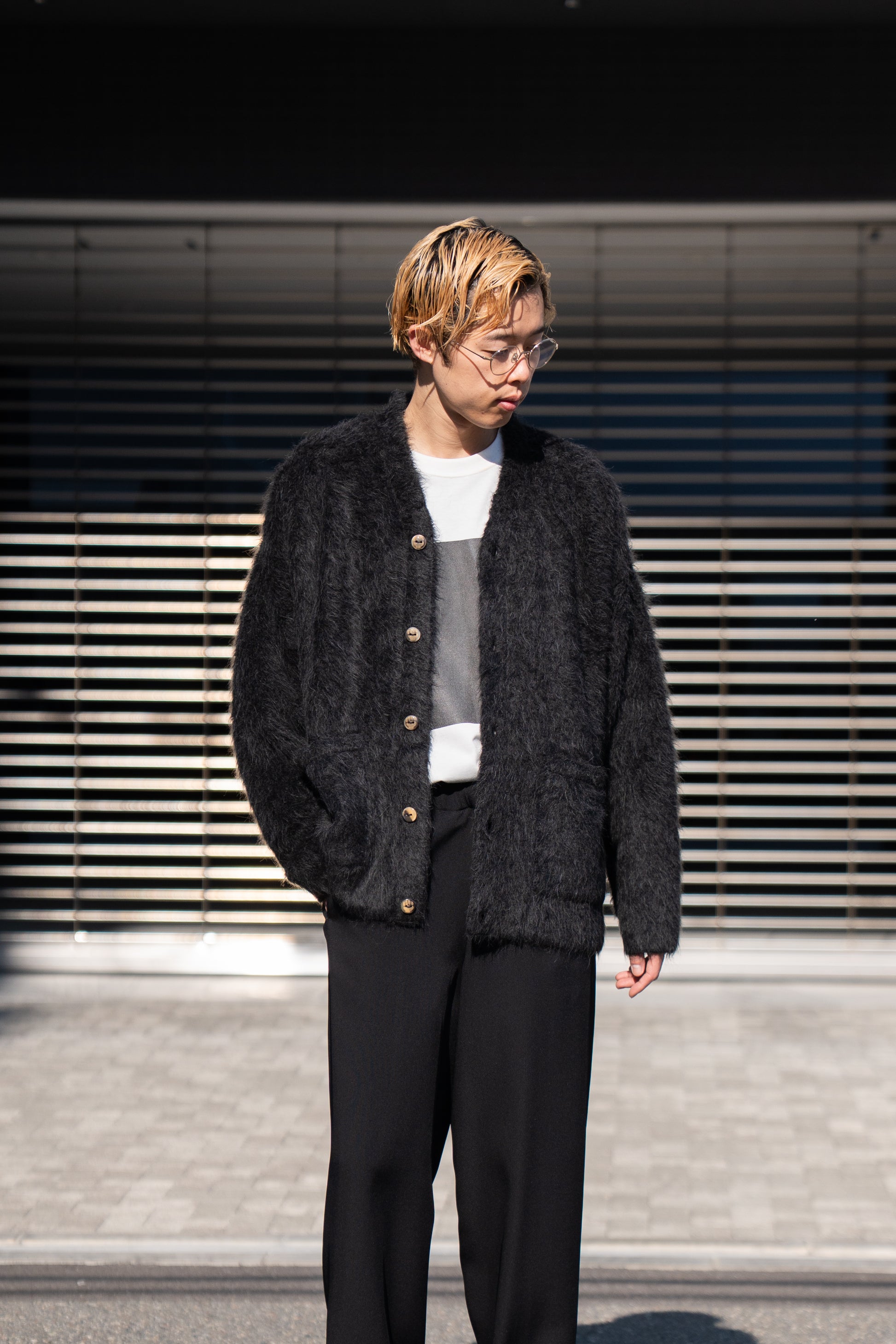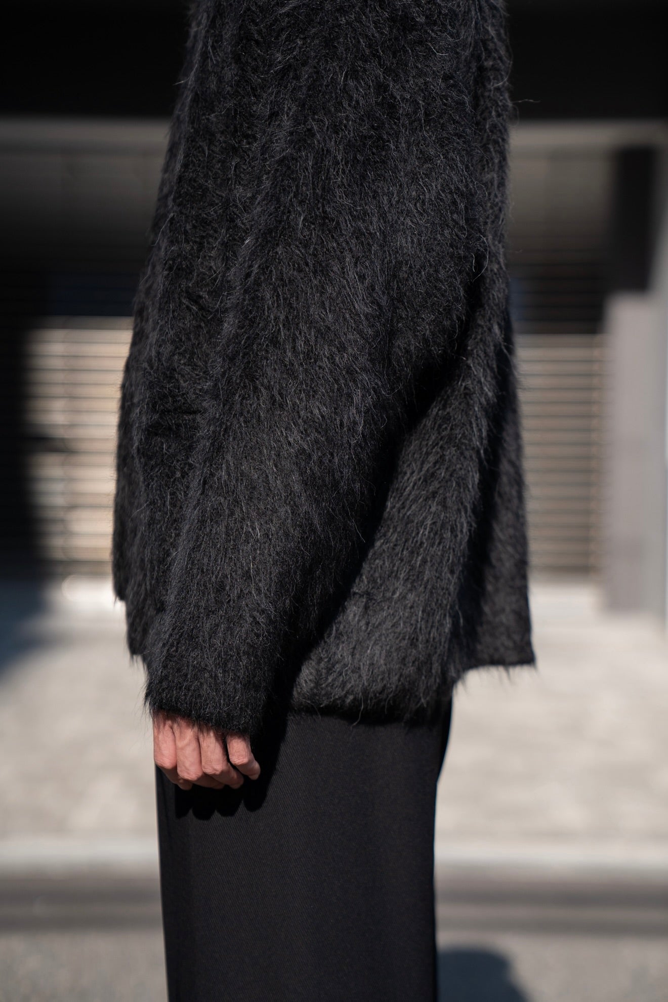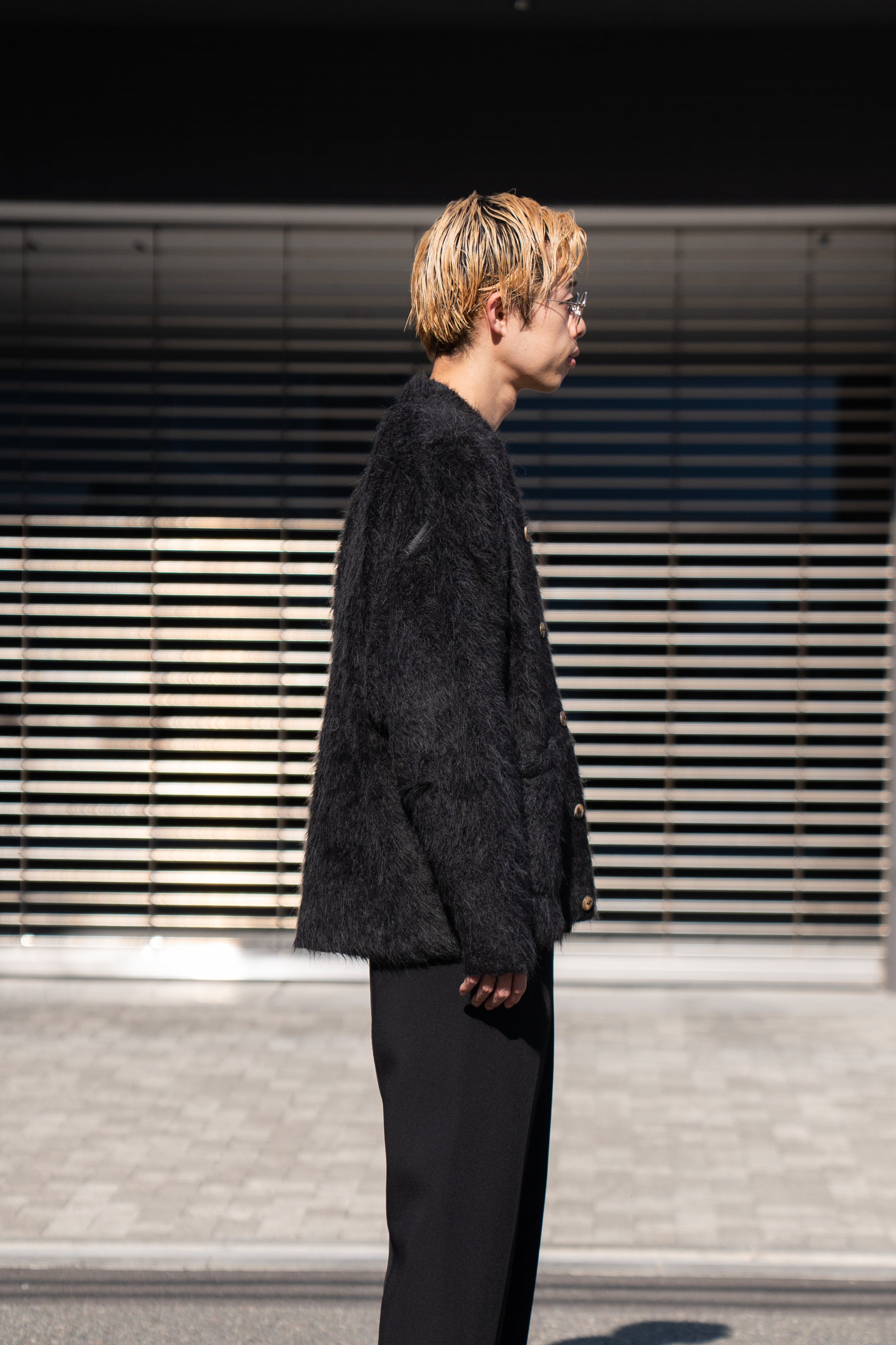 The Inoue Brothersでは定番の長い毛足が印象的なアルパカ素材の”Suri Cardigan”