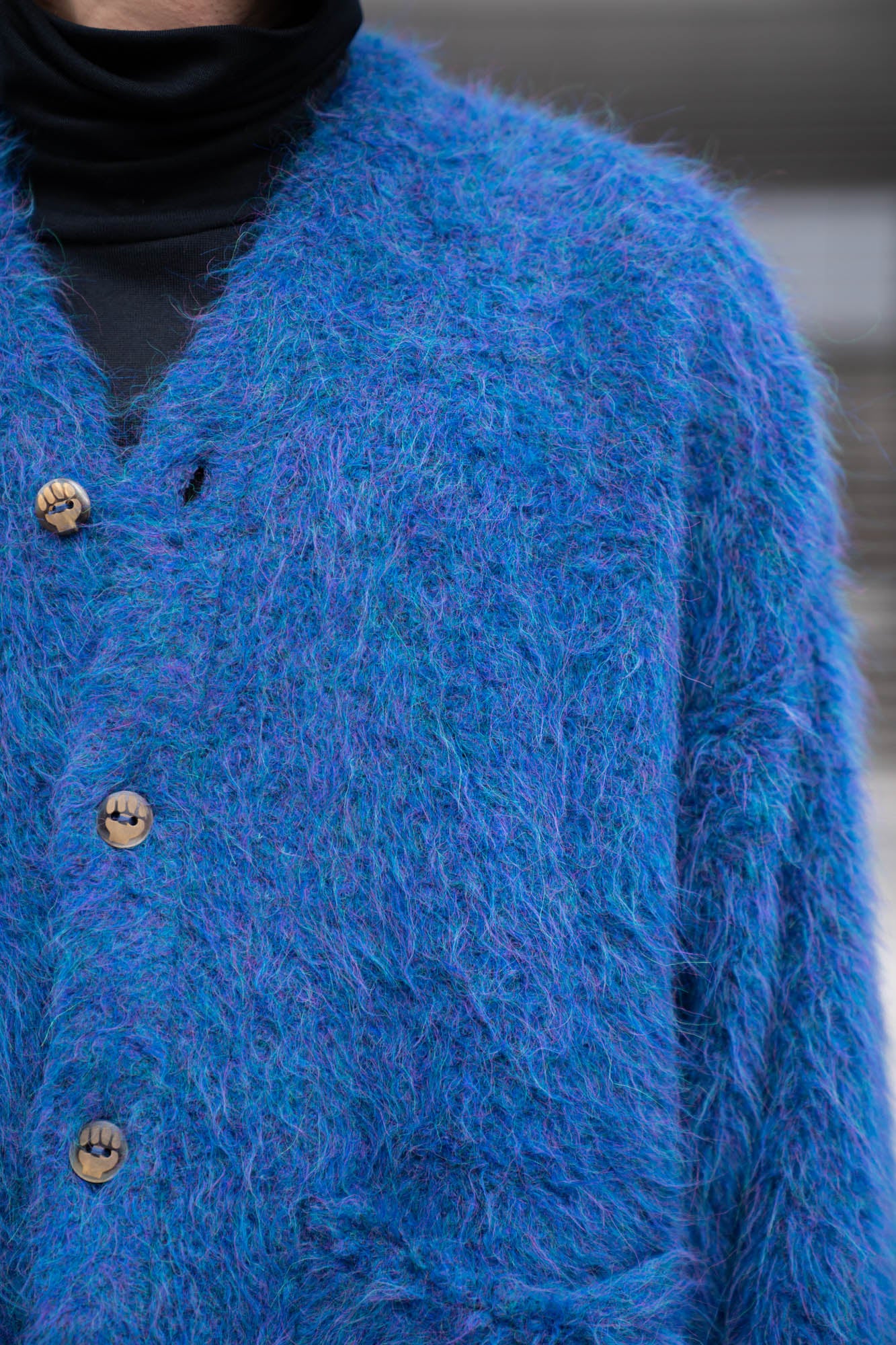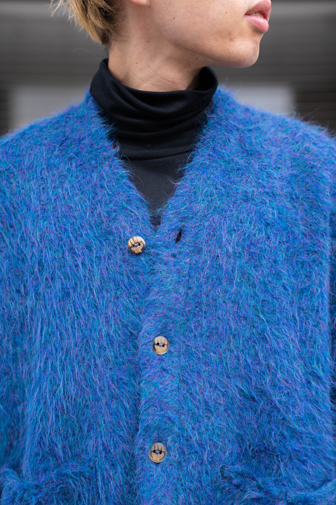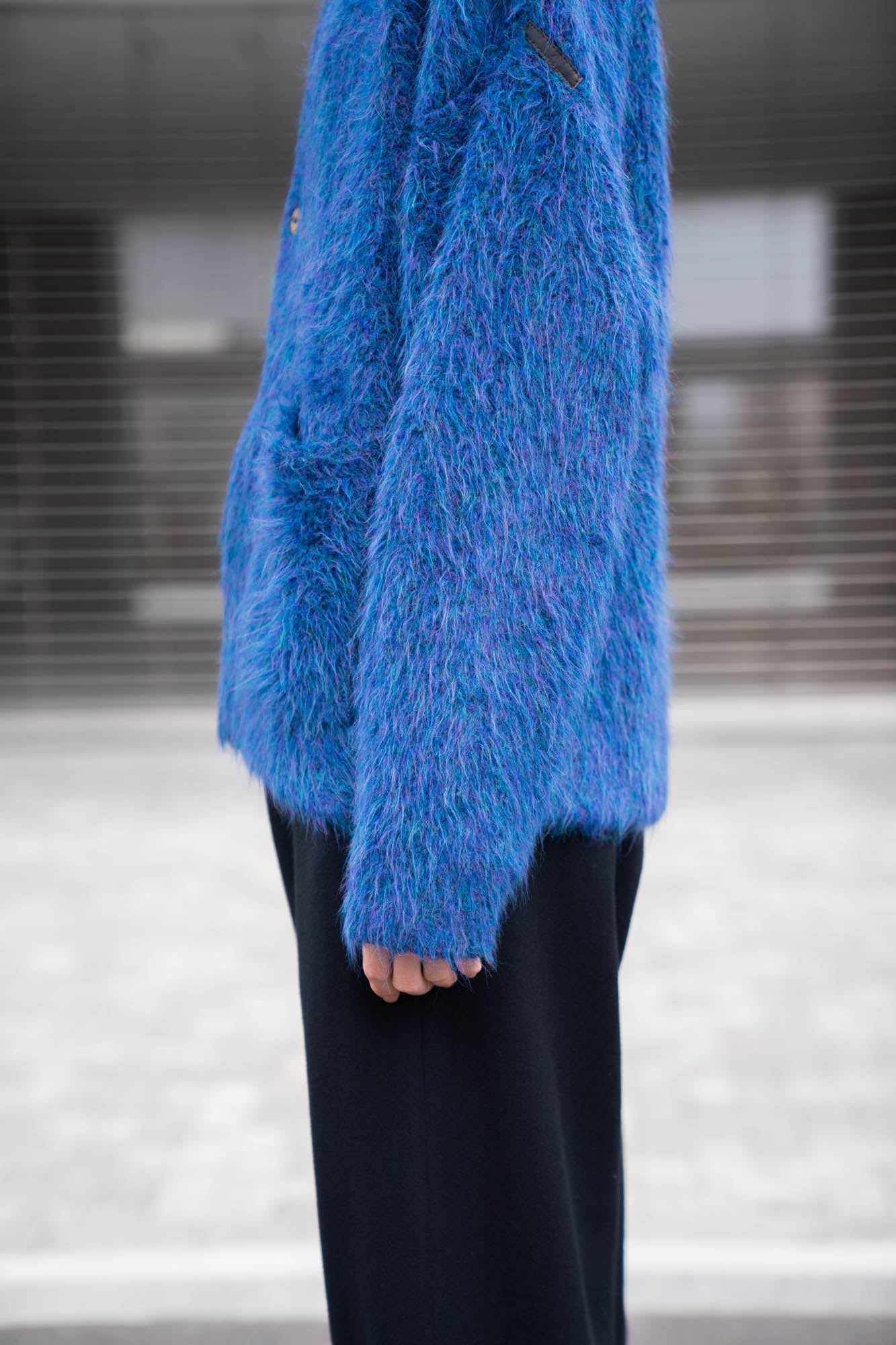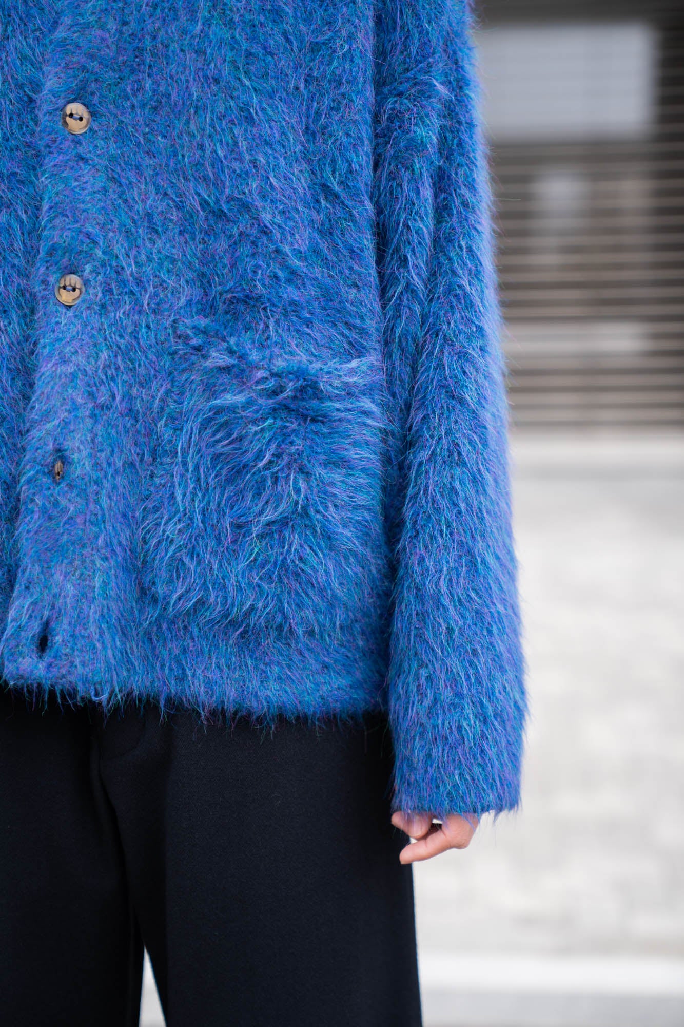 The Inoue Brothersでは定番の長い毛足が印象的なアルパカ素材の”Suri Cardigan”